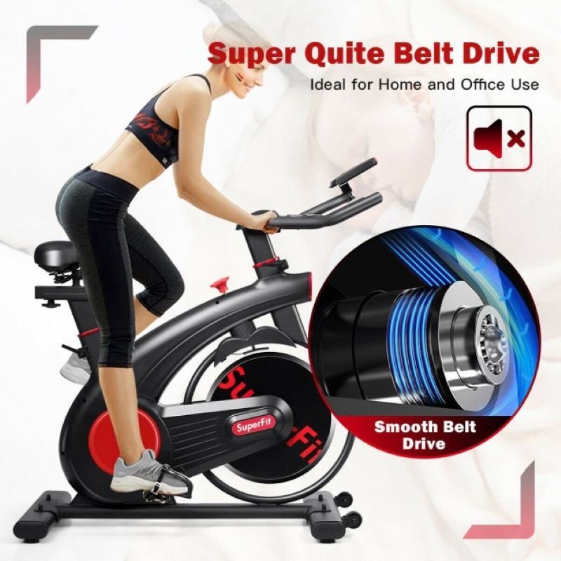 Sturdy Flywheel: The 18-pound steel flywheel is designed to maintain momentum smoothly as you cycle on the cardio machine. Heavy flywheels support speed, stability, and consistency across your workout. The belt driven system provides a smoother and quieter ride than chain transport.