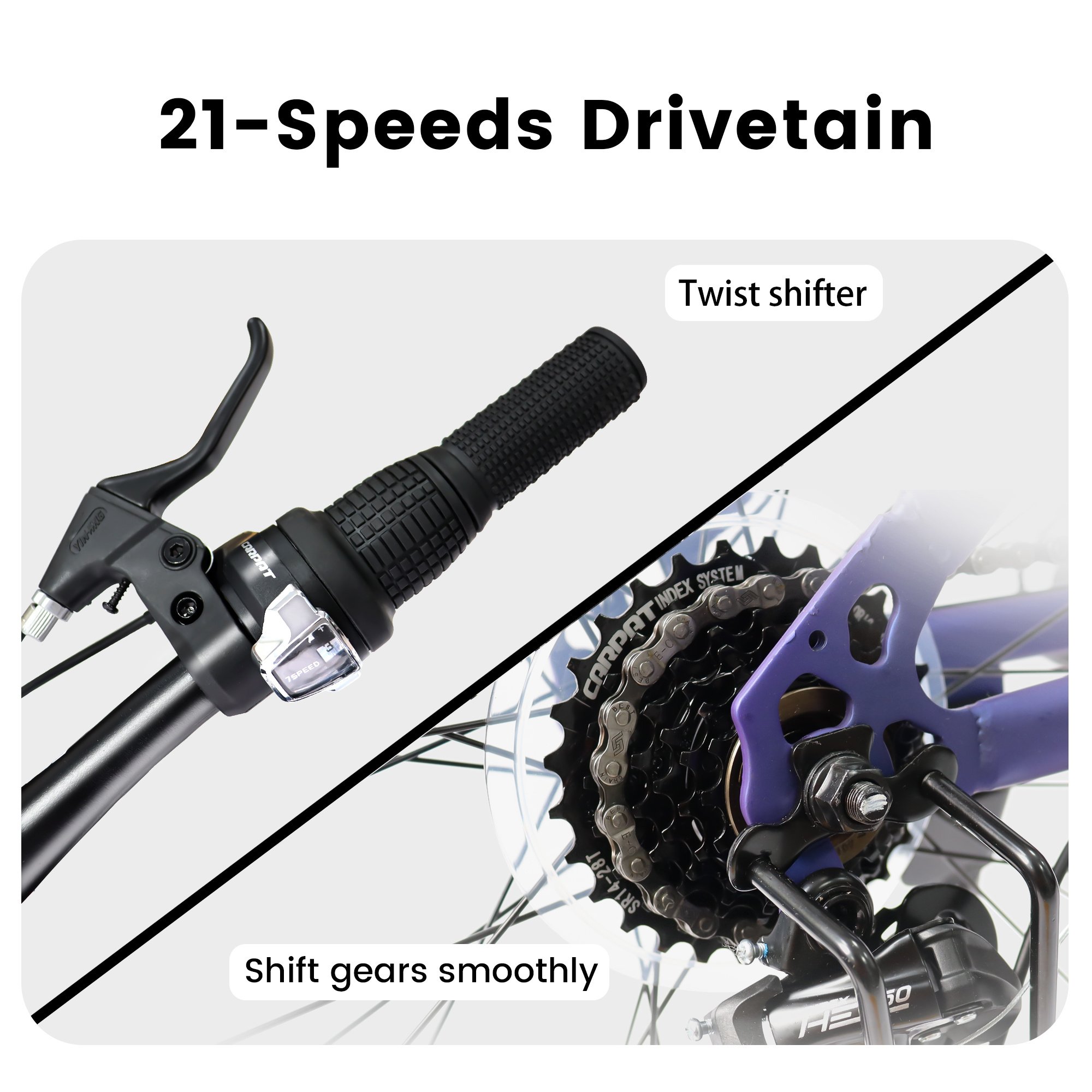 [21-Speed with U Brakes]Grip Shifter help to switch gears with smoothness. Simple operation allows for quick selection of gears for various terrains. Dual U brakes system, simple structure and convenient for maintenance.