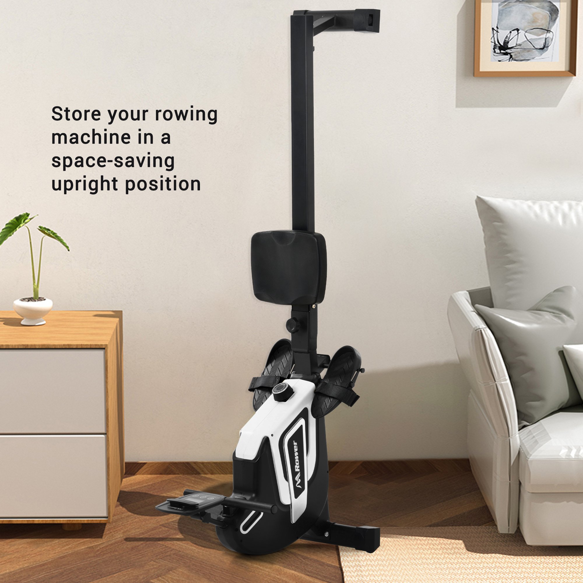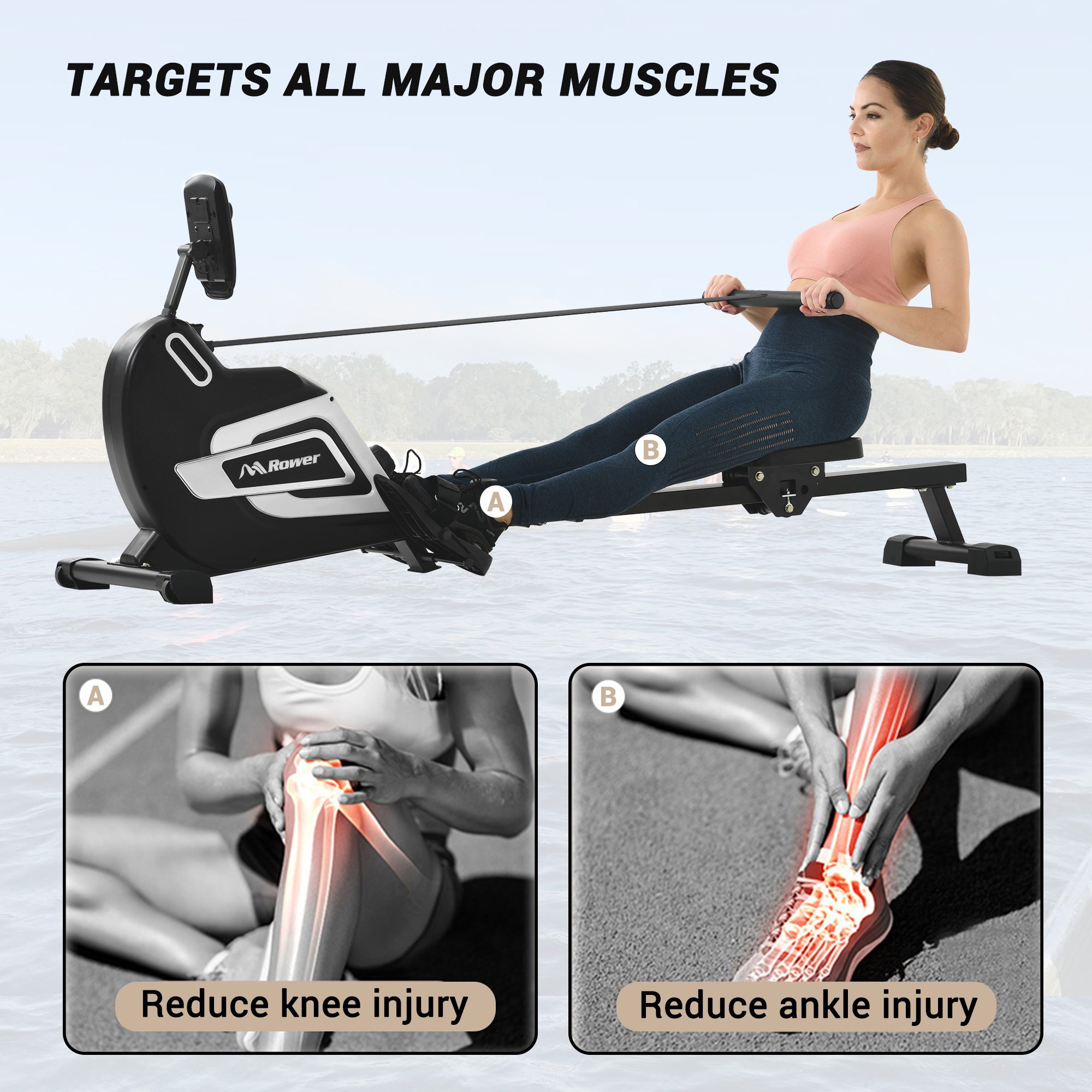 Best for Home Gym - This magnetic resistance rowing machine is undoubtedly the best choice for your home fitness. It meets your aerobic exercise needs while avoiding too much load on your joints or muscles. When you choose this magnetic rowing machine; you will find that its extremely quiet working performance allows you to exercise at any time without worrying about disturbing other family members.t choice for your home fitness. It meets your aerobic exercise needs while avoiding too much load on your joints or muscles. The 14-level adjustable resistance knob; ergonomically shaped cushions and handles; and adjustable wide pedals allow each family member to find a comfortable sitting posture suitable for their exercise. With the foldable feature; with the transport wheels configured on the front leg base; you can easily move and store it in the corner in your house without taking up too much space. This folding rower is your best choice to start configuring your home gym.