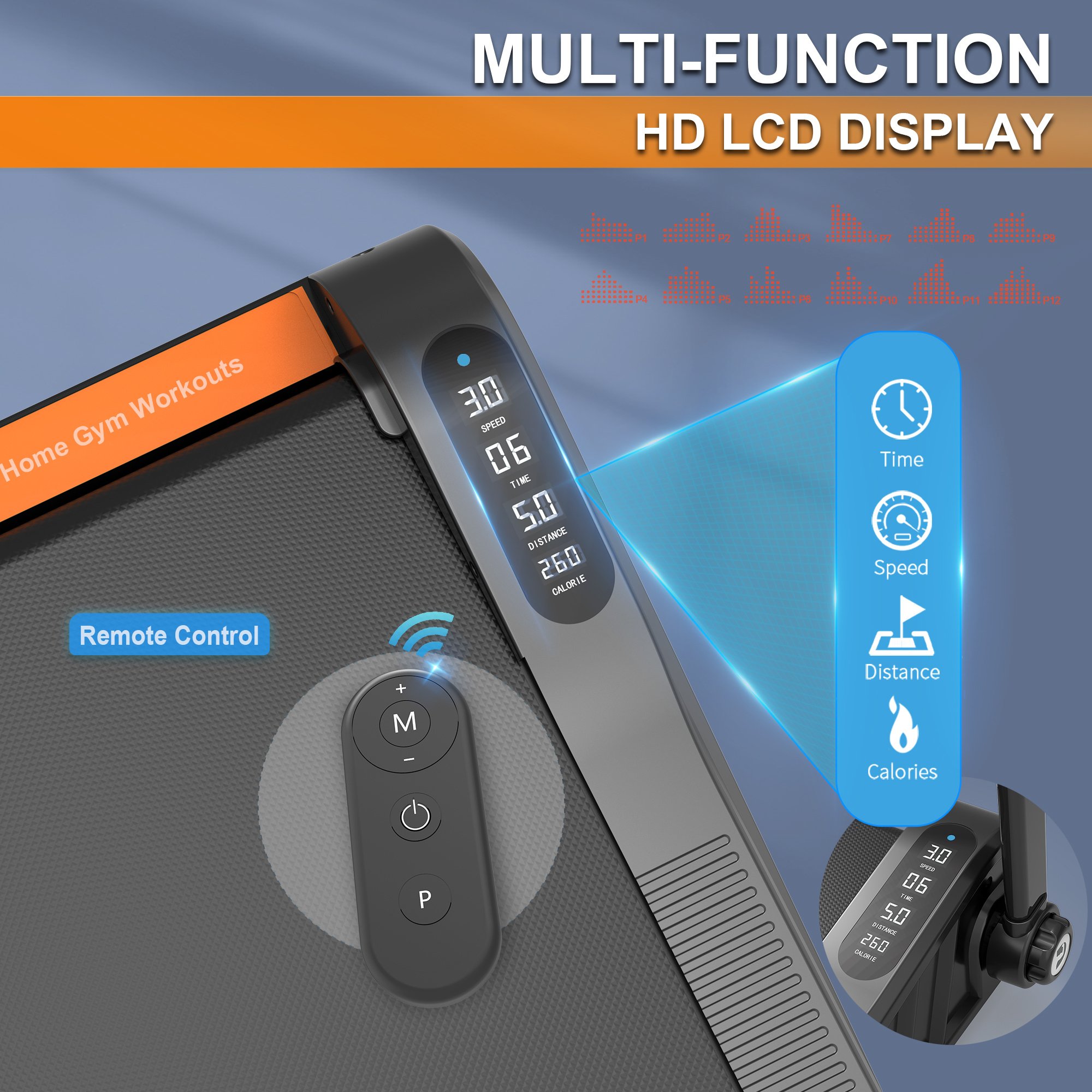 Smart LCD Display - 4 x 0.8" LCD displays keeps tracking Speed, Time, Distance, Calories and calories burned. You can also change speed or stop in an instant with the remote control.