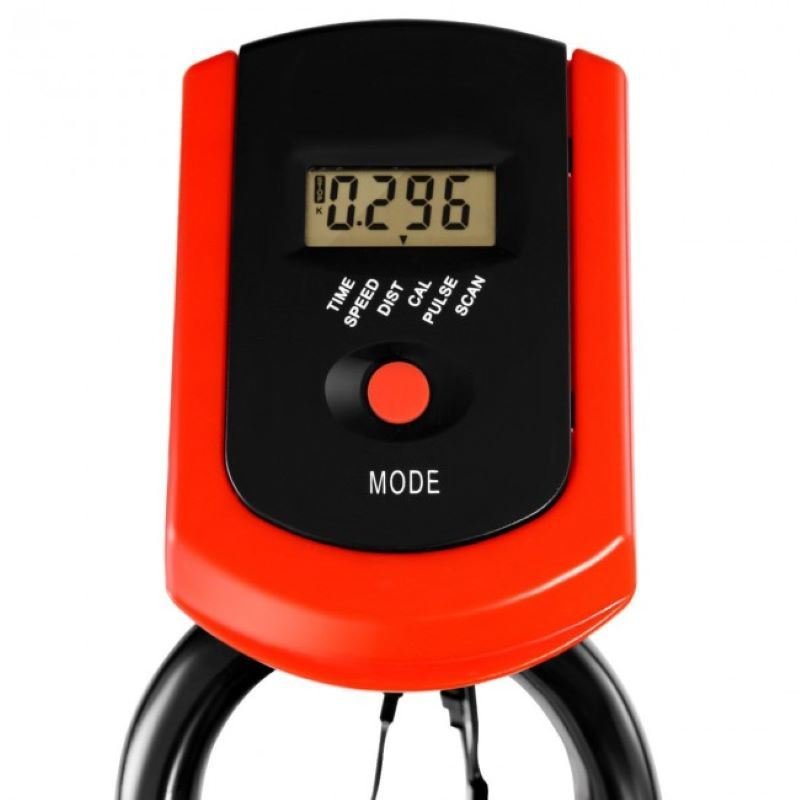 LCD Display: easy to read LCD screen indicates time, speed, calorie, distance, pulse and scan, keep track of your performance and monitor your progress. Press the mode button to select the pulse function, the monitor will display your current heart rate in beats per minute. A phone holder under the display for putting the phone.