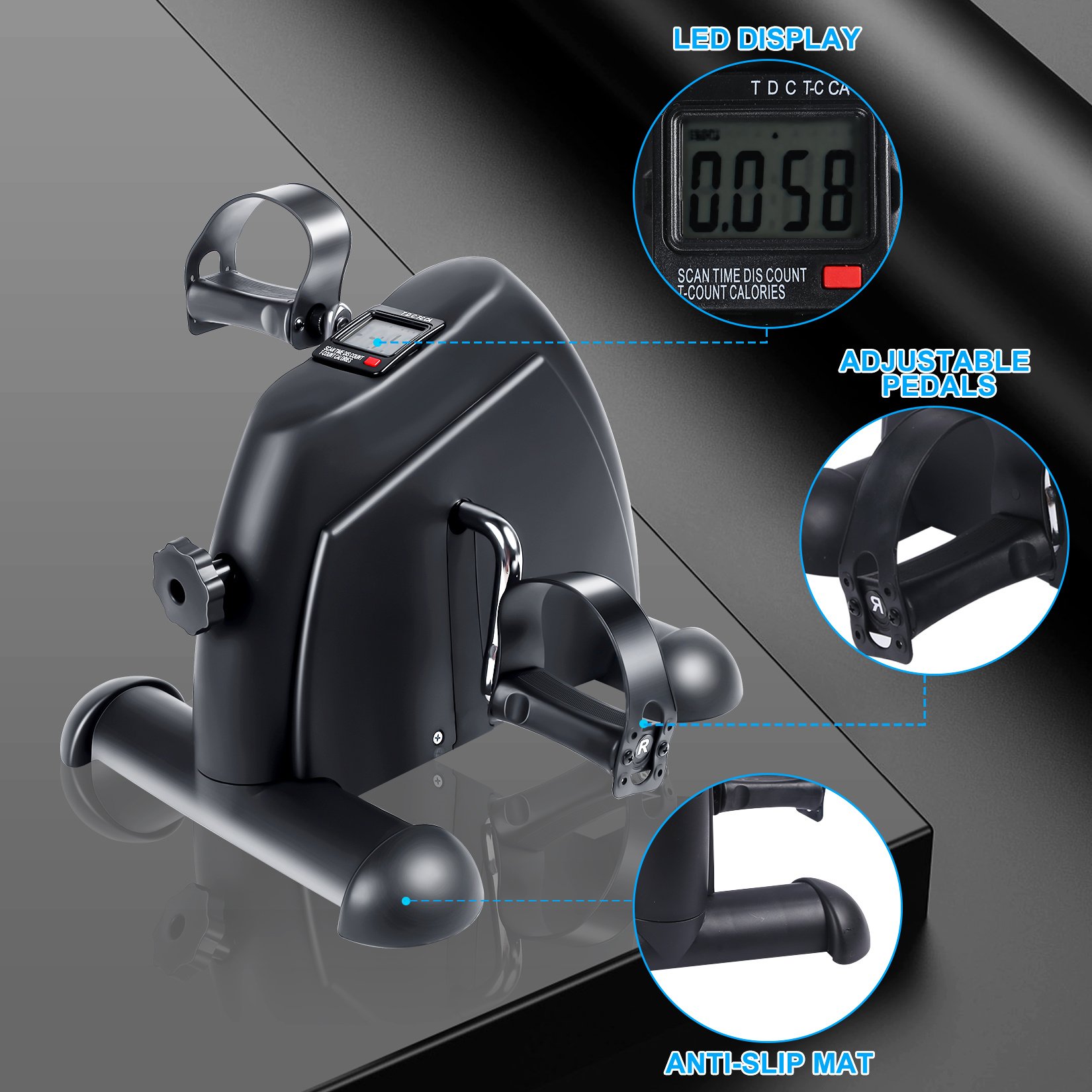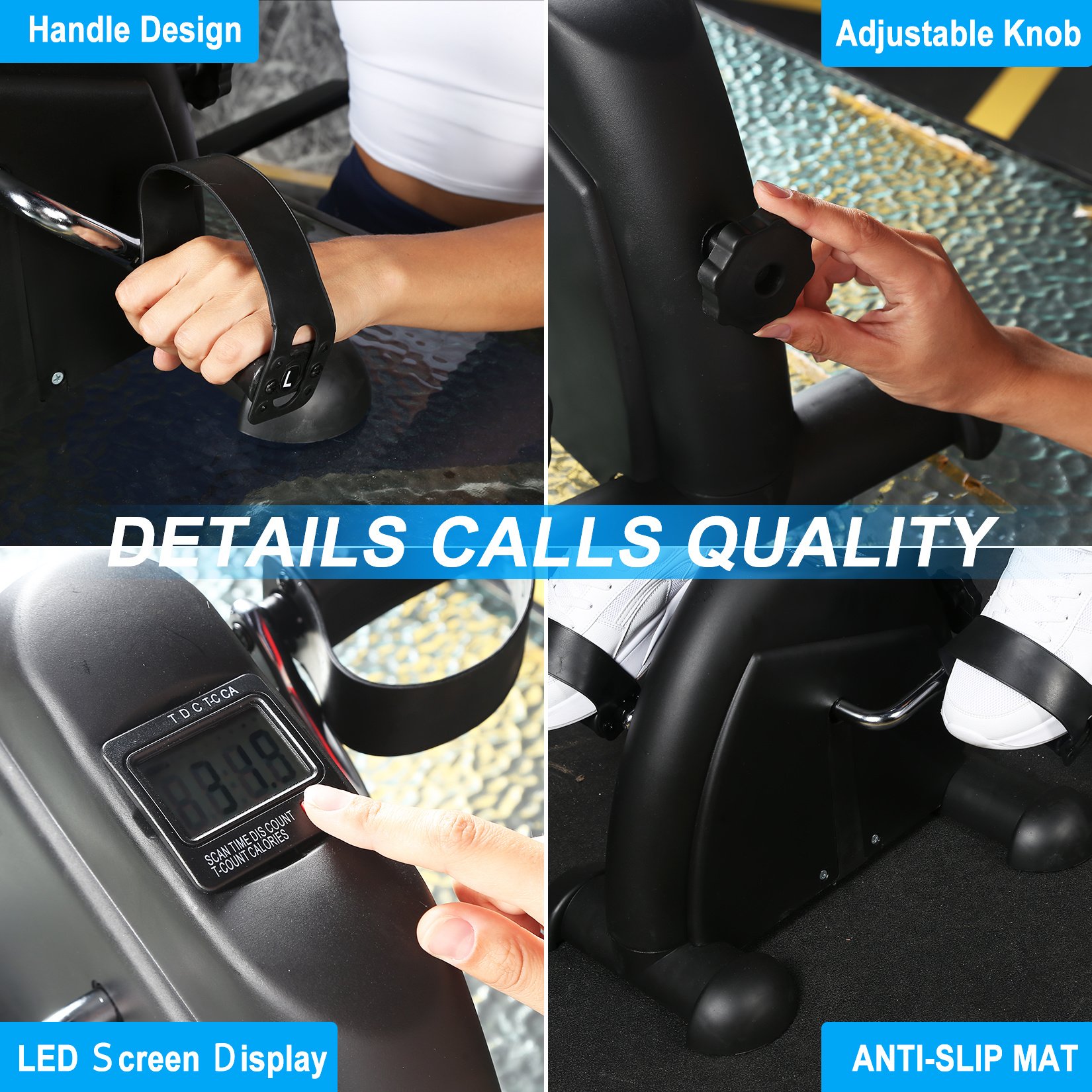 Muti-functional Display - The Pedal exercise bike is equipped with a multifunctional LCD display, easily to track the workout progress (time, count, distance and calories burned). LED display and touch control are also optional for your convenience.